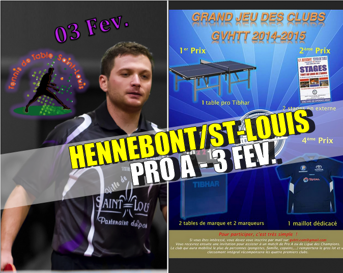 Je vous informe que notre club est invité par la GVHTT à la rencontre de Pro A les opposant à Saint Louis avec dans ses rangs Adam Pattantyus un des meilleurs défenseurs européen le 3 Février 2015.
