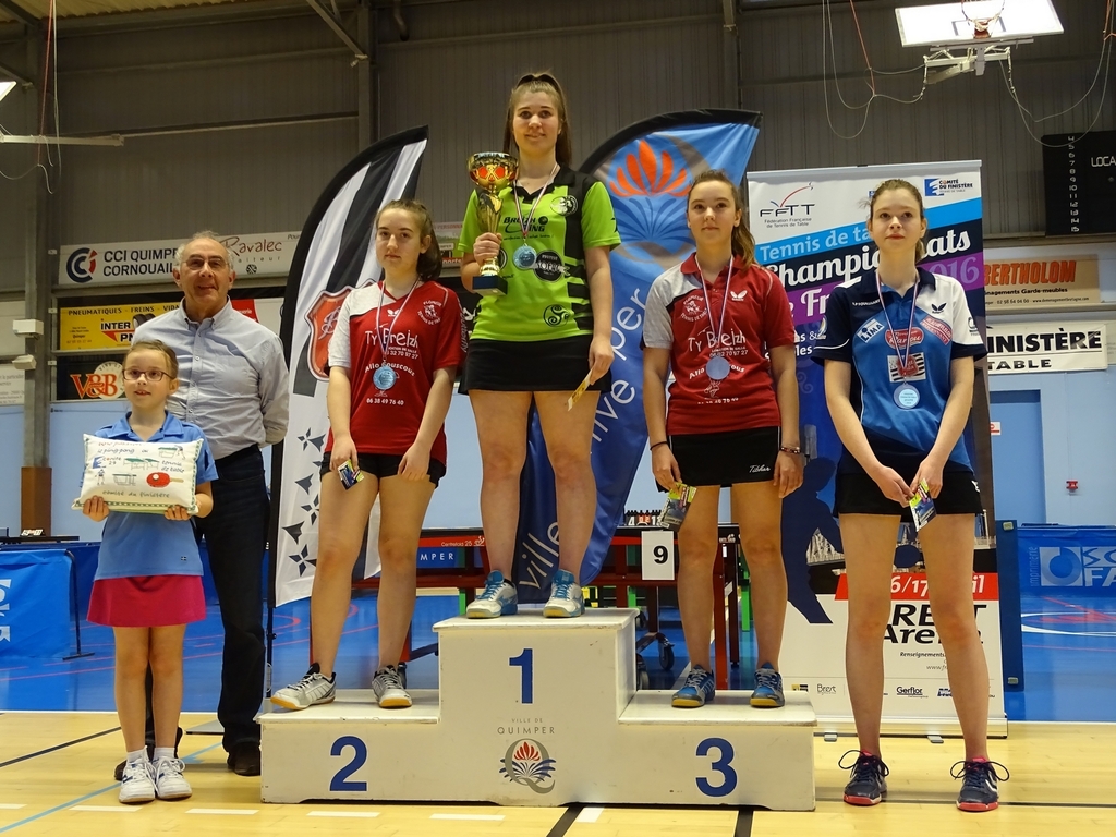 Placé sous la responsabilité de Michel Coat et du comité départemental, le championnat du Finistère, avec la participation de plus de 300 jeunes, a vu l'émergence d'une nouvelle vague prometteuse. En finale des juniors masculins, le Fouesnantais Raphaël Hervé est parvenu, à l'issue d'un duel très serré, à prendre l'ascendant sur le Brestois Jérémy Ogor (11-9, 11-7, 11-9). Chez les filles, en juniors, la Loperhétoise Cécilia Raux (classée 13) a su faire parler la hiérarchie face à la Plomeuroise Camille Mottin, à l'issue de trois manches disputées (11-7, 11-6, 12-10). Dans les autres catégories, Gwenaël Divanach et Emmanuel Palud ne tarissaient pas d'éloges sur la bonne tenue de leurs jeunes pousses, particulièrement dans les doubles. Du côté fouesnantais, Emmanuel Ortion et Jonathan Marec se trouvaient récompensés de tous leurs efforts avec la nuée de résultats positifs obtenus lors de cette compétition dans de nombreuses catégories. Des résultats, certes attendus, mais très encourageants pour l'avenir du club. Quant à la présidente lopérhétoise, Isabelle Poulain, elle se trouvait comblée par le bon comportement de ses féminines dans plusieurs catégories, particulièrement des cadettes qui ont réalisé un carton plein.