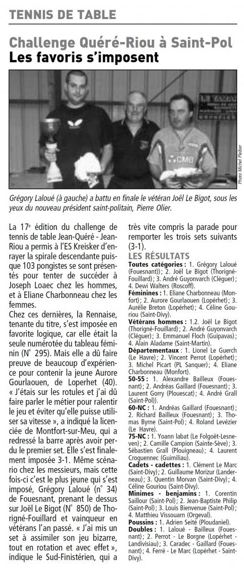 RP FOUESNANT TENNIS DE TABLE