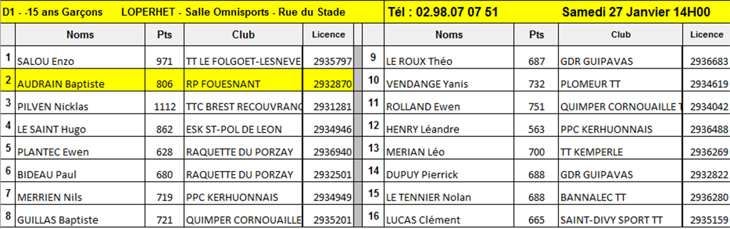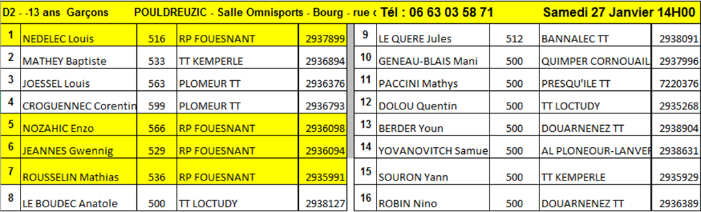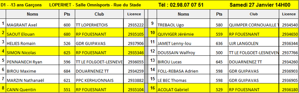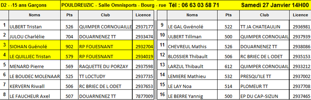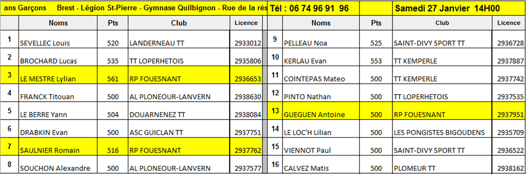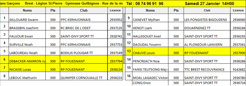 RP FOUESNANT TENNIS DE TABLE